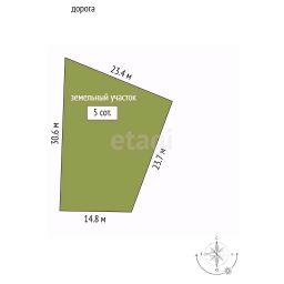 Участок имеет уклон, что обеспечивает хороший обзор и возможность проектирования дома с террасами или многоуровневой планировкой. Коммуникации, включая электричество и водоснабжение, проходят в непосредственной близости, а канализация реализована через локальные очистные сооружения, что гарантирует автономность и комфорт. Подъезд к участку осуществляется по грунтовой дороге, схематично обозначенной в плане жилой застройки.