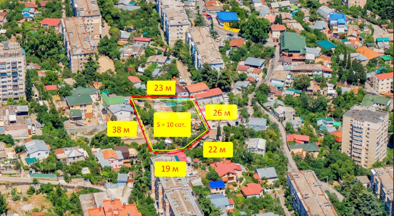 Продается участок в центре Ялты. Площадь его составляет 10 соток. На участке есть деревья. Участок частично ровный, есть постройки требующие реконструкции. Площадь дома 47 м2. Есть возможность перевести с ИЖС малоэтажная в многоквартирная застройка от трех до пяти этажей. Вода, газ, электричество и канализация централизованные. В шаговой доступности общественный транспорт, школа, детский сад, магазины и овощной рынок. До моря 20 минут пешей прогулкой, по центру Ялты.