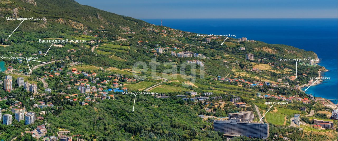 Участок площадью 7 соток расположен в престижном районе вблизи Массандровского дворца и заповедной зоны, всего в 5 км от центра Ялты. Благодаря удачному расположению на склоне сюда открывается панорамный вид на город и море, который не будет перекрыт будущей застройкой. Транспортная доступность — ключевое преимущество: до центра Ялты можно добраться за 5 минут на автомобиле, до ближайших пляжей — за 10 минут. Участок находится в зоне с развитой инфраструктурой, при этом окружен крымскими соснами, что обеспечивает приватность и чистый воздух.