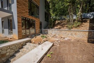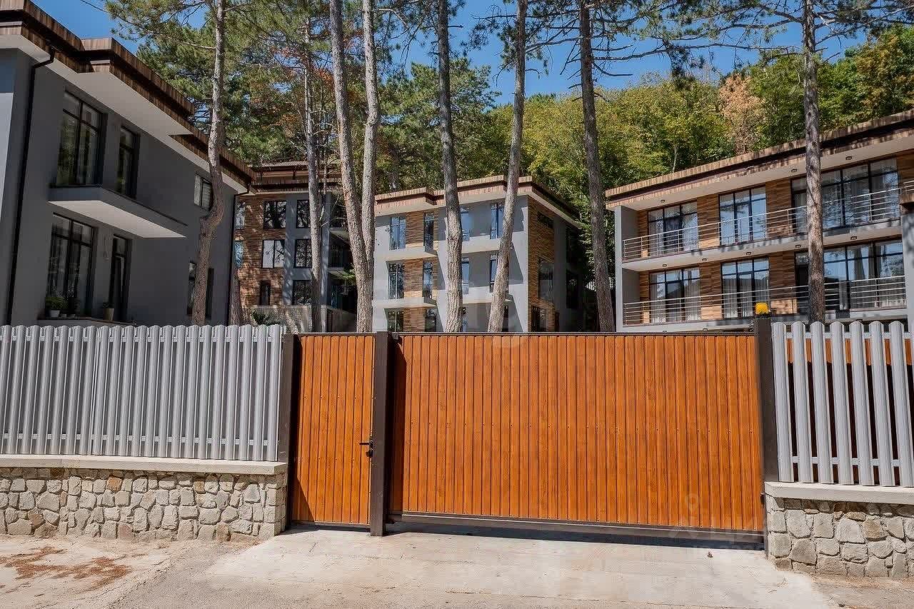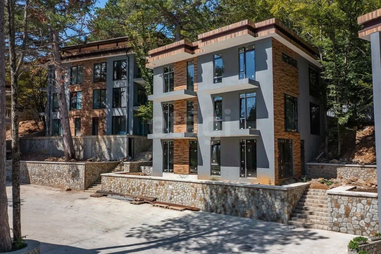 Современный трехэтажный дом общей площадью 172,2 кв.м. расположен в камерном поселке Высокогорное, в экологически чистой зоне Ялты, граничащей с горнолесным заповедником. Участок окружен вековыми хвойными деревьями, что обеспечивает не только приватность, но и насыщенный фитонцидами воздух, способствующий оздоровлению. Архитектура здания с панорамным остеклением и эксплуатируемой кровлей позволяет максимально интегрировать жилое пространство в природное окружение, создавая эффект единения с лесом при сохранении современного уровня комфорта.