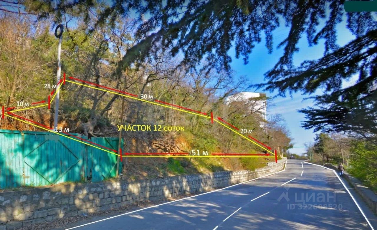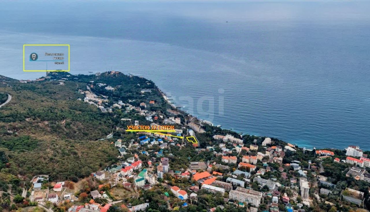Продается видовой участок площадью 12 соток на первой линии в пгт.Гаспра, правильной формы, идеально подходящий для строительства вашего дома мечты.