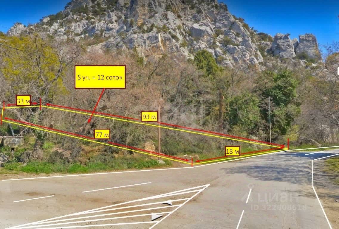 Продаётся земельный участок ИЖС общей площадью 12 соток. Участок имеет уклон в сторону моря. На границе с участком все центральные коммуникации, вода заведена на участок. Асфальтированные подъездные пути. С верхней границы участка вид на море. До остановки общественного транспорта 6 минут пешком. До центра симеиза 5 минут на авто, или 15 минут пешком.