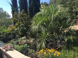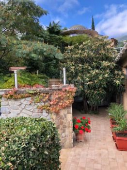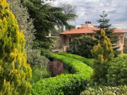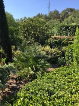 На территории участка фруктовый сад, различные растения, зона барбекю, места для отдыха.
