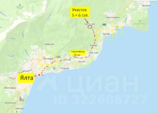 Продается видовой участок площадью 6 сот в Ялте, с. Партизанское. Назначение участка : блочная застройка.