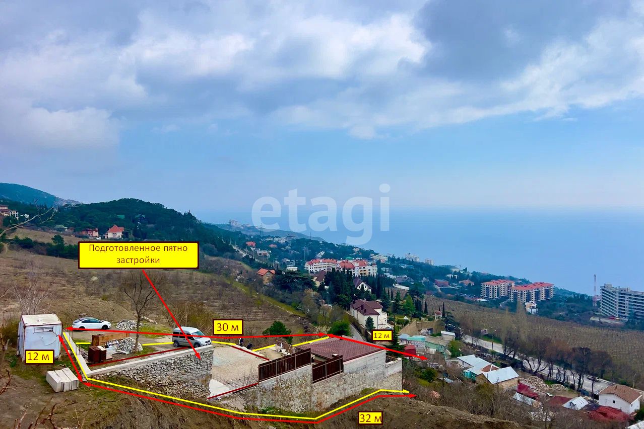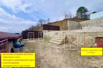 Построена капитальная беседка с мягкой кровлей, с мангалом и местом для отдыха, а также терраса с видом на море, горы и Ялту.
