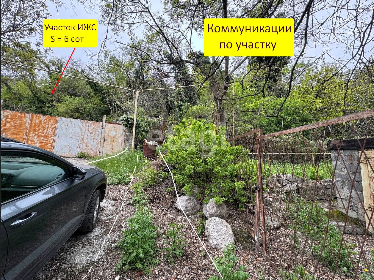 Площадь участка 6 соток. Участок расположен в жилом районе, с развитой инфраструктурой. С участка удобный выезд на Севастопольское шоссе, в центр Кореиза и на пляжи.