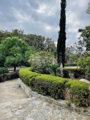 На участке высажены множество разновидных растений,во дворе расположен открытый бассейн,так же место для парковки автомобилей.