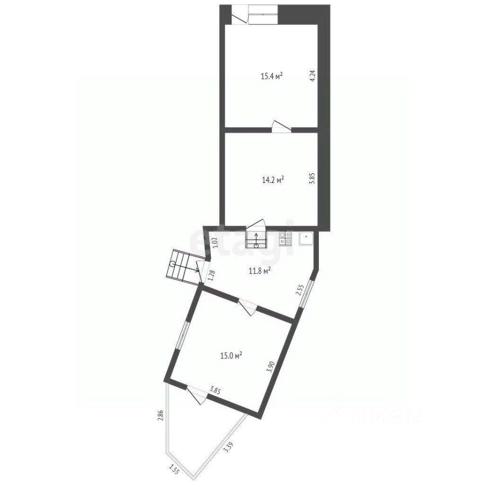 Первый этаж  - комната (11,8 кв. м.), кухня , туалет , + c/у и душ.  и комната (14 кв.м.) цокольный этаж.