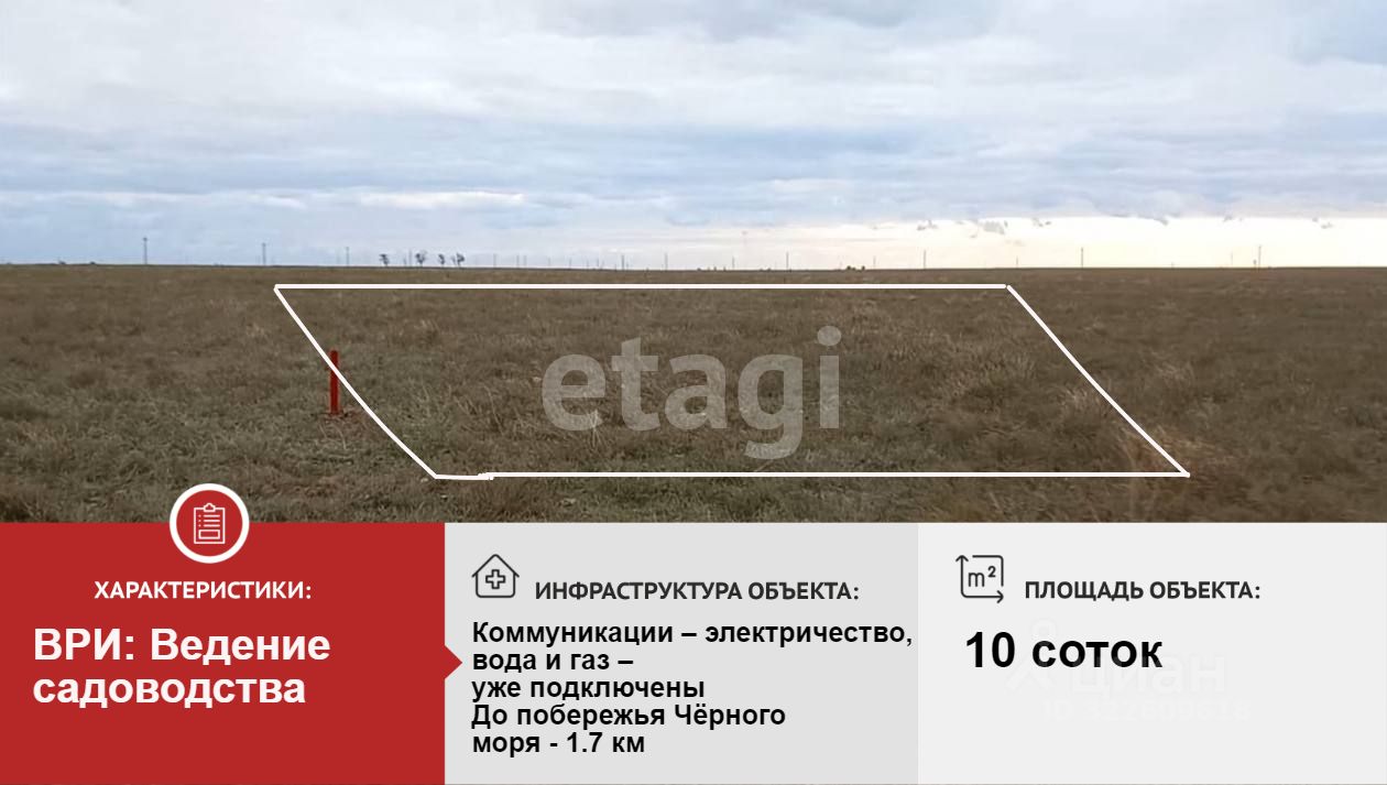 Район активно застраивается, до побережья Чёрного моря - 1.7 км. Строительство "новой Евпатории" в 2 километрах от участка.