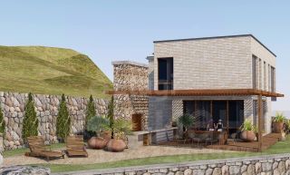 Дом построен с учетом сложных грунтов южного берега Крыма - фундамент монолитная плита с уходящими внутрь земли бетонными сваями, монолитный каркас, стены из кирпича. В настоящий момент планируется установка окон.