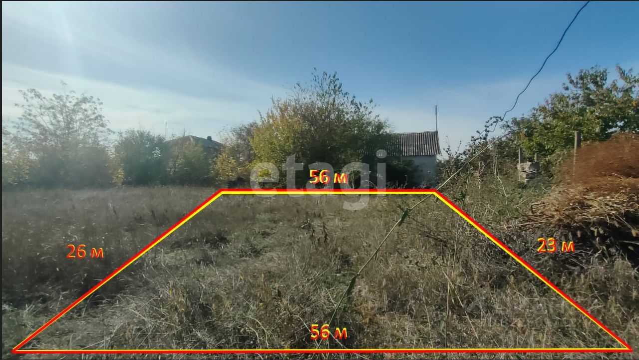 Продается участок общей площадью 14 соток. Назначение земли: под индивидуальное жилищное строительство. Участок ровный. Имеет правильную форму и конфигурации приближенную к трапеции. Рядом с участком проходят центральные вода и свет, канализация септик.