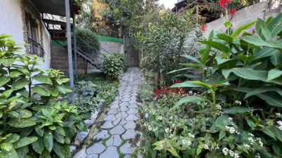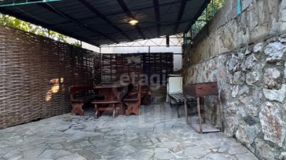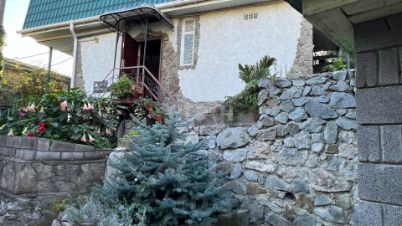 Участок огорожен и имеет два входа. Установлено видеонаблюдение. На участке высажены реликтовые растения и цветы, выделено несколько зон отдыха: мангальная зона, зона отдыха для загара на шезлонгах. На территории участка расположен также садовый домик ( площадью 6 кв.м). Двор выложен тротуарной плиткой и камнем "луганец". Во дворе организован небольшой пруд с рыбками. По границе участка течёт горный ручей.