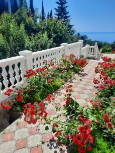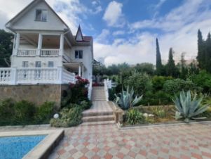 Территория участка огорожена, имеется два просторных гаража и хозяйственные постройки. Всего в 10 минутах пешком вы доберетесь до разнообразных пляжей, а в 5 минутах — до старинного Мисхорского парка и знаменитого Воронцовского дворца с его великолепным парком.