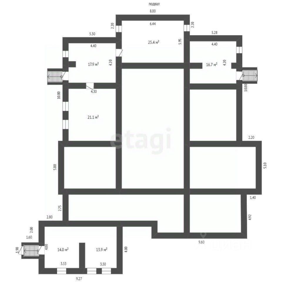 Есть подвальное помещение,и два этажа,30 отдельных комнат,большие террасы с царскими колоннами.