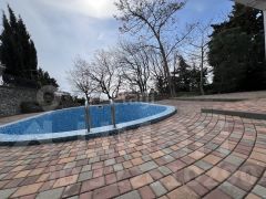 На территории расположен плавательный бассейн, гараж с подвалом, вписанный в скальную породу. Придомовая территория имеет оригинальный ландшафтный дизайн.