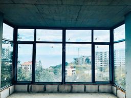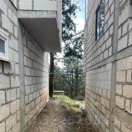 Дом выполнен в современном стиле, из газоблока. Установлены окна, двери, на третьем этаже панорамные окна, открывающие вид на море и Ялту. К дому подведены коммуникации: газ, электричество, канализация. Дом вводится в эксплуатацию в данный момент, земля в собственности.