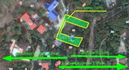 Продаётся земельный участок общей площадью 7 соток в центральной части города Алупка. Назначение земель под индивидуальное жилое строительство. На участок заведена вода и канализация, столб электроснабжения проходит по границе участка. Асфальтированные подъездные пути. Есть возможность купить рядом смежный участок площадью 6 соток. С участка открывается великолепный вид на море, Воронцовский дворец и парк.