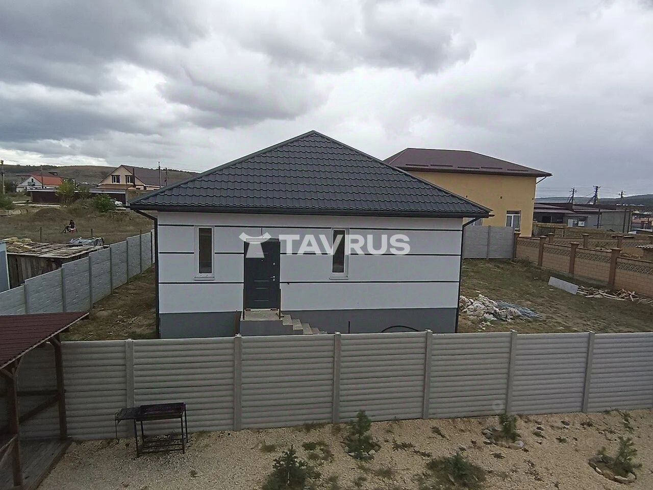 Второй дом: из ракушки в камень, 12 на 10 м, жилой площадью 102 м² в предчистовой отделке. Внутри: