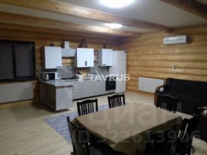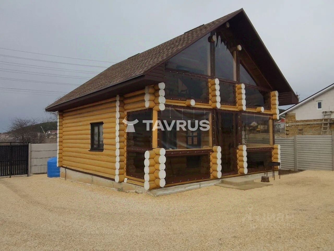 Первый дом: двухэтажный сруб из толстого неоцилиндрованного бревна площадью 120 м². Внутри вас ждёт: