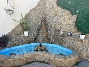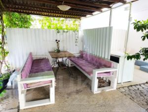 Дом общей площадью 121,2 кв.м построен из экологически чистых материалов: дерева и камня-ракушечника. Ракушечник обеспечивает отличную теплоизоляцию зимой и приятную прохладу летом, а также поглощает шум. Общая площадь застроек составляет 318 кв.м.