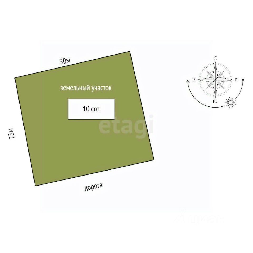 Участок ровный, прямоугольной формы. До центра посёлка 2 минуты езды.