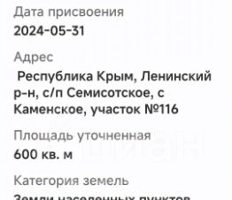 Предлагаем вашему вниманию уникальный участок площадью 6 соток в живописном уголке Республики Крым, в Ленинском районе, в селе Каменское. Это настоящая находка для тех, кто мечтает построить собственный дом у моря. Участок находится всего в 30 км от города и имеет удобный подъезд по асфальтированной дороге, что делает его доступным в любое время года. До моря чистых пляжей всего 1км.