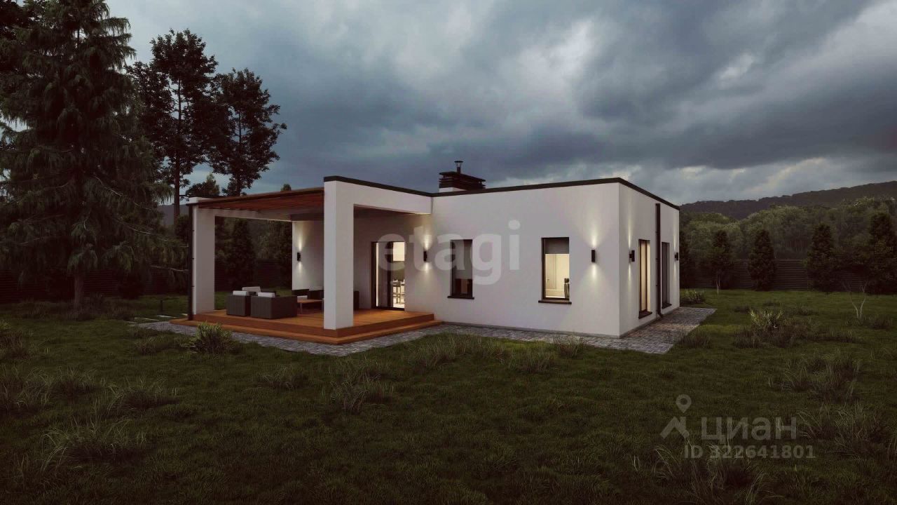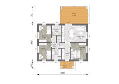 Дом трехкомнатный с большой кухней - гостиной, двумя санузлами, а так же просторной террасой. Подойдет для большой семьи, которые ценят простор и личное пространство! Планировка дома на фото.
