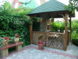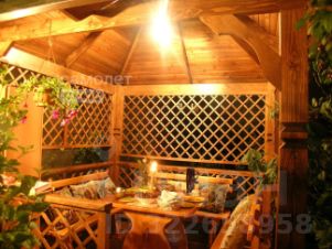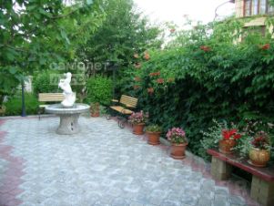 Освещение выполнено уличными и наземными фонарями, в центре сада установлен мраморный фонтан( статуэтка с кувшином), лавочки, клумбы с цветами розы, Две беседки с камином из огнеупорного кирпича для барбекью и шашлыков. В доме установлена сигнализация и видео наблюдение, во всех комнатах кондиционеры.
