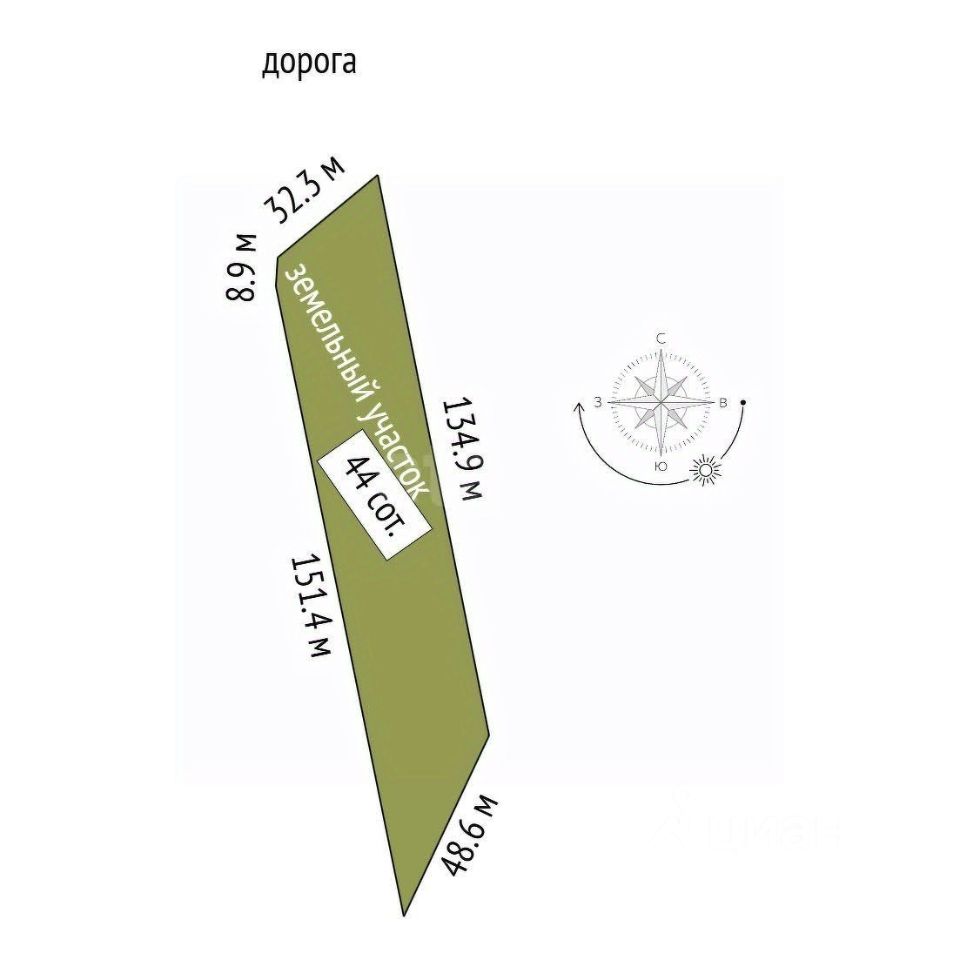 Участок площадью 44 сотки, расположен в территориальной зоне ведения садоводства согласно утвержденному генеральному плану и правилам землепользования и застройки. Это значит, что Вы можете не только заниматься садоводством, но и построить жилой дом, баню, магазин или другие объекты капитального строительства!