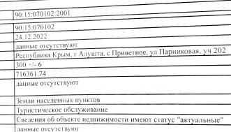 Срочно! Продам чудесный земельный участок в 150 м от моря в посёлке Приветное, Алуштинского района. ул. Парниковая, участок 202. Ландшафт ровный. Кадастровый номер 90:15:070102:2001. Из коммуникаций: электроэнергия и вода рядом, канализация - септик.