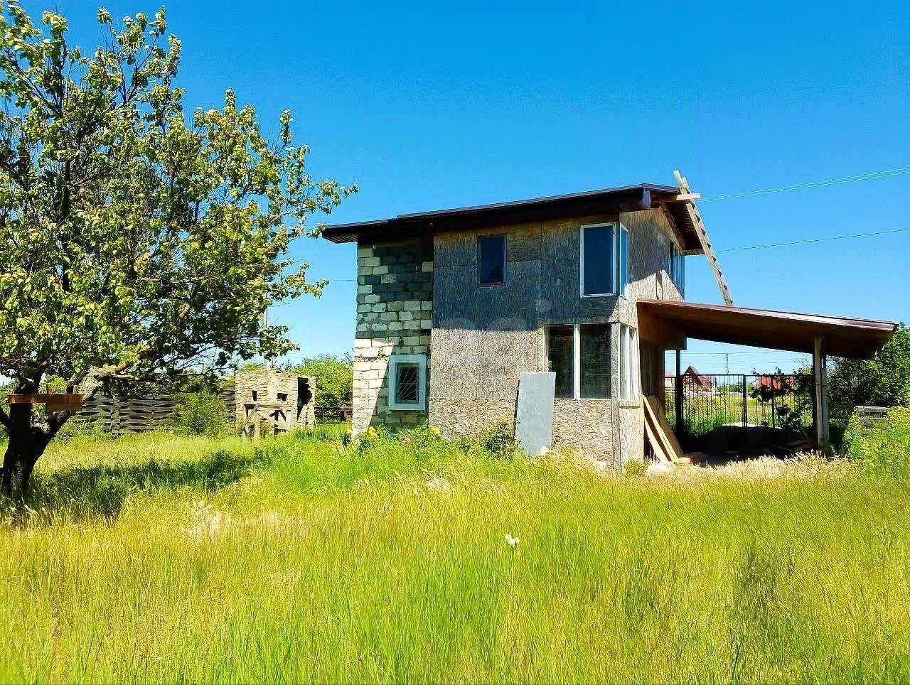Недостроенный дом из камня и ОСБ имеет 2 этажа.