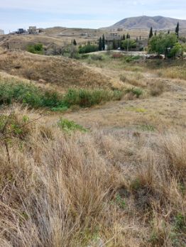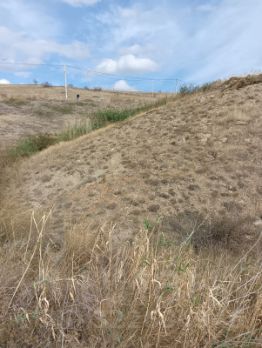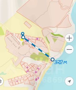 До моря по дороге 400 метров. По улице есть электричество, газ по улице. Некоторые соседние участки уже подключены к газу. Водопровода нет, вода привозная. Участок под уклоном, соседи активно строятся, кто делает террасы, кто делает дома на сваях.