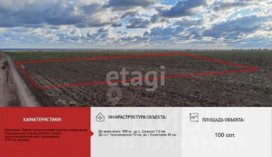 100 соток. Разрешенное использование-сельскохозяйственное использование.