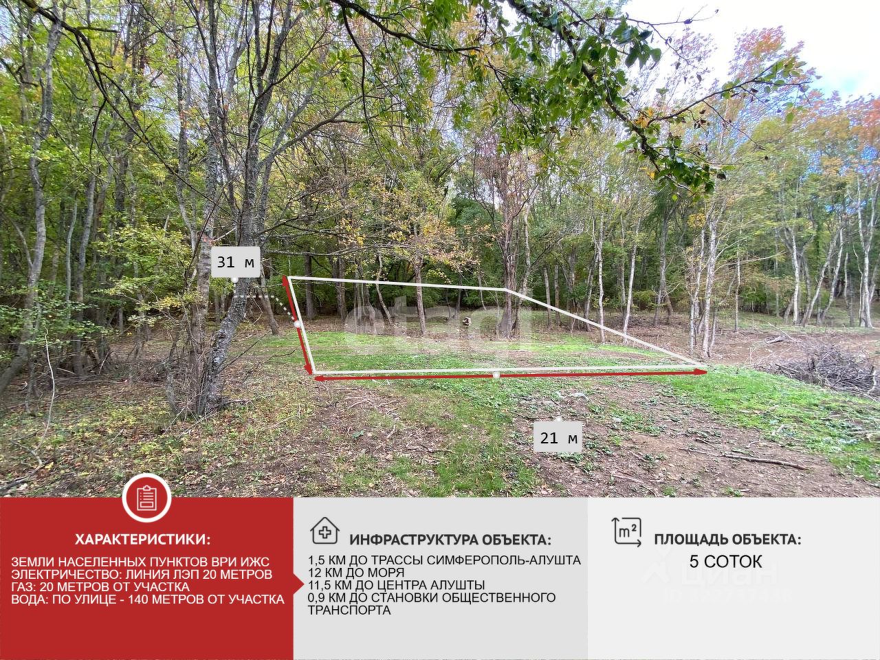 Отличный земельный участок 5 соток с видом на Крымские горы, расположен в селе Верхняя Кутузовка г. Алушта. В селе магазины, амбулатория, детская площадка, остановка общественного транспорта. Вокруг ведется активная малоэтажная застройка. Многие соседи построились и проживают постоянно. В пешей доступность местная достопримечательность - "Арочный мост".