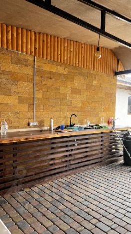 - большой навес, рабочая поверхность с раковиной, большой стол и скамьи, барная стойка, комната отдыха, санузел, тех помещение с насосной системой.