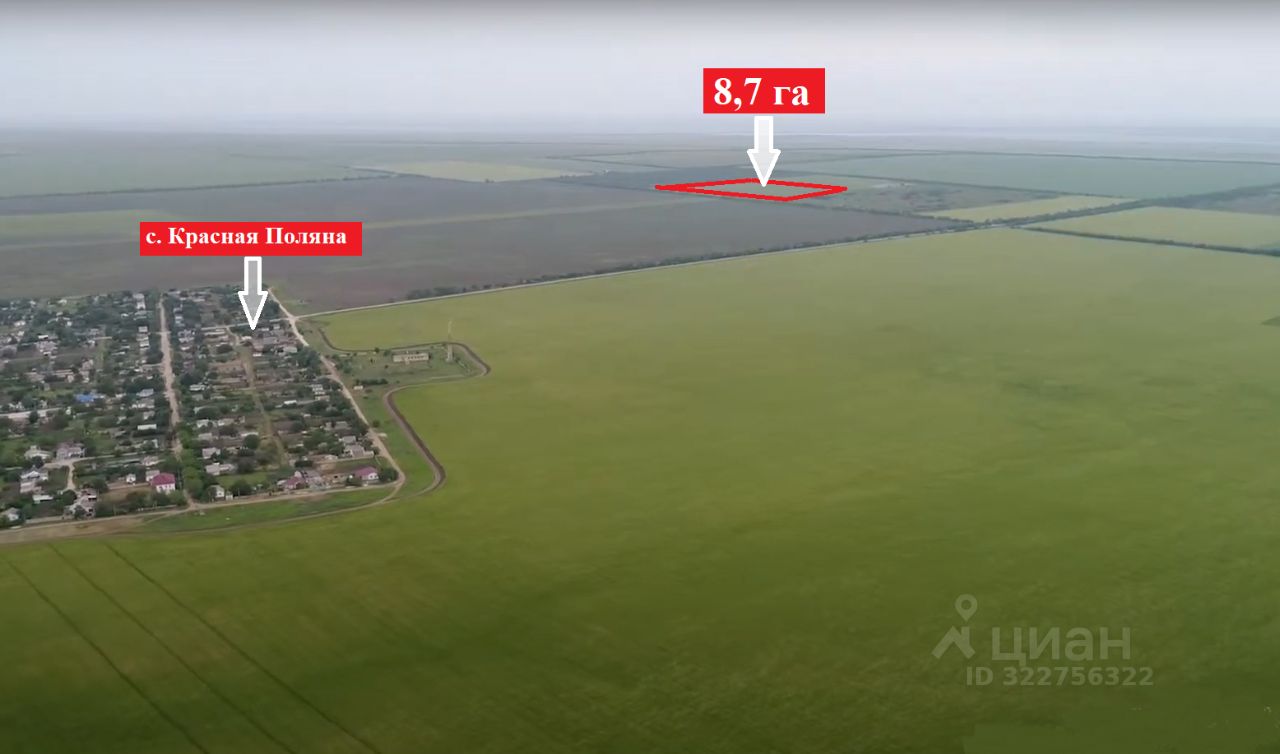 Продается земельный участок площадью 8,7 га. Участок находится на территории Краснополянского сельского совета, недалеко от села (1 км.). Назначение земли: сельскохозяйственное использование. Удобное расположение. Вдоль участка проходит грунтовая дорога. Длина фасадной части по дороге 395 метров. До трассы Черноморское Евпатория 2 км. До моря 10,4 км. В Продаже так же соседний (не смежный участок) по такой же цене.