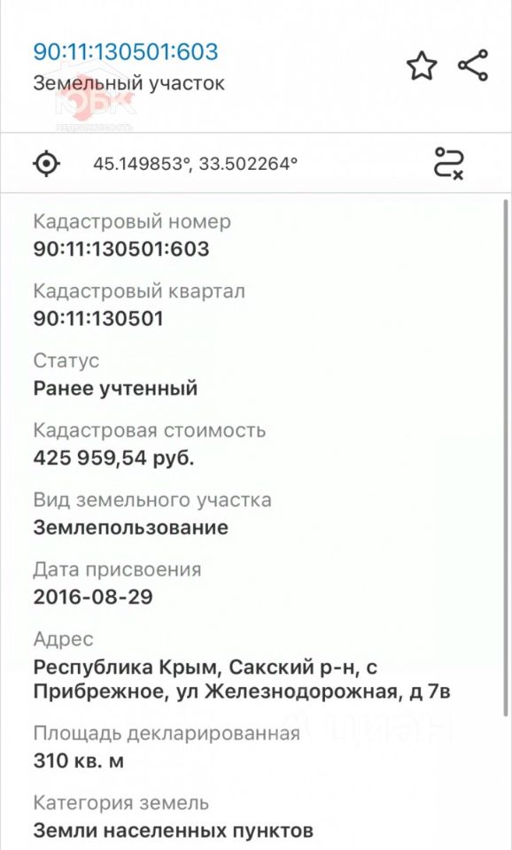 Продам земельный участок в курортной зоне Прибрежное, Сакского района.