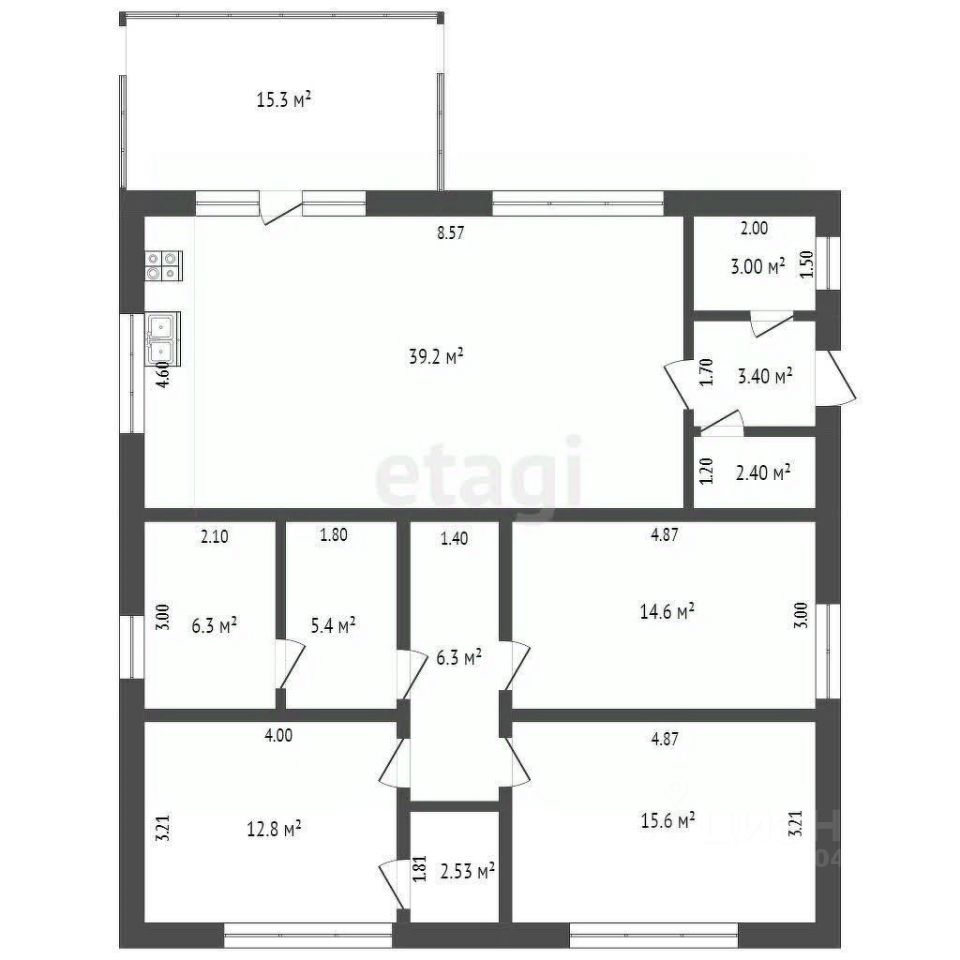 Одноэтажный дом площадью 127 кв.м., расположен на участке площадью 5,99 соток прямоугольной формы. Дом предлагается с предчистовой отделкой.