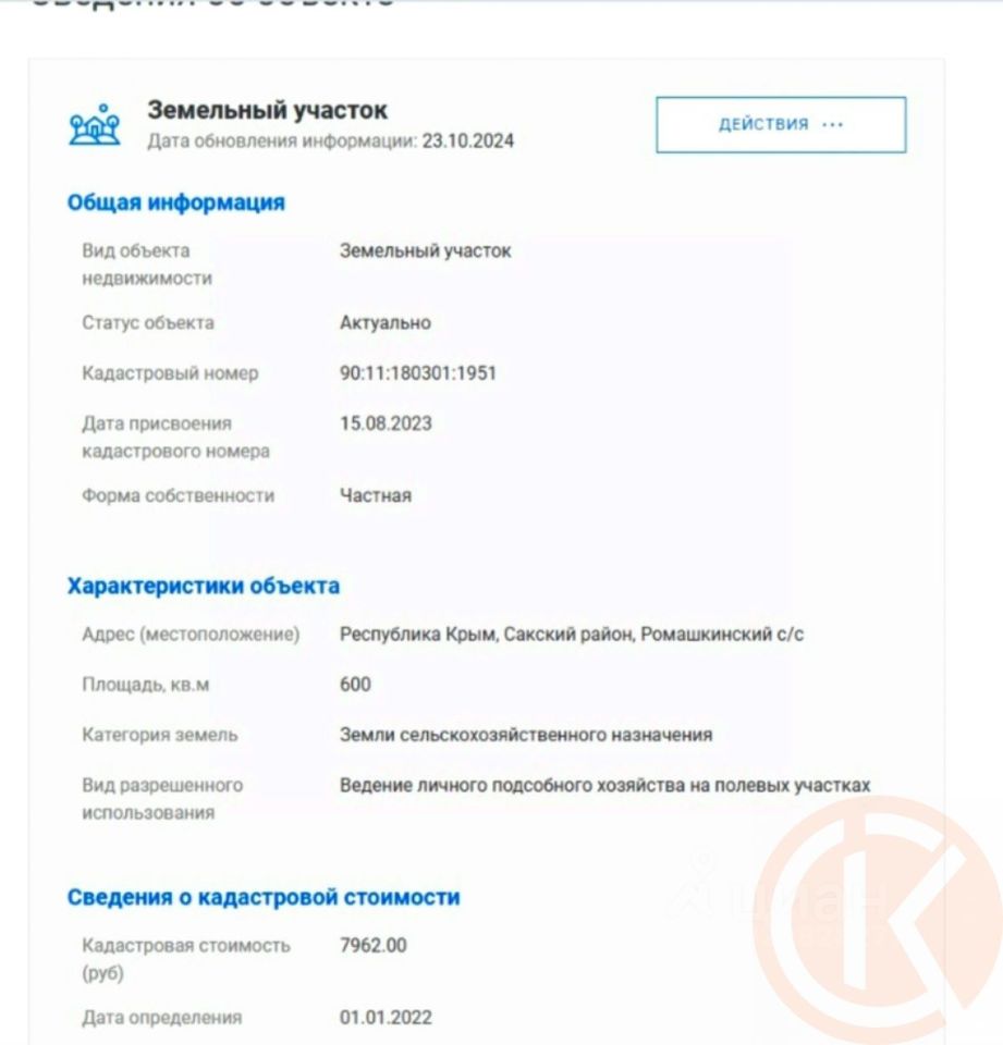 кадастровый номер участка 90:11:180301:1951 , есть возможность приобрести смежный участок.