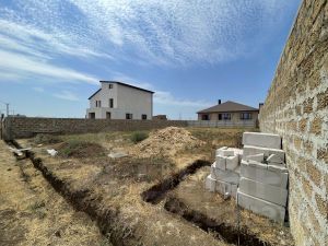 Участок огорожен с трех сторон камнем (ракушечник).