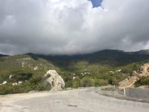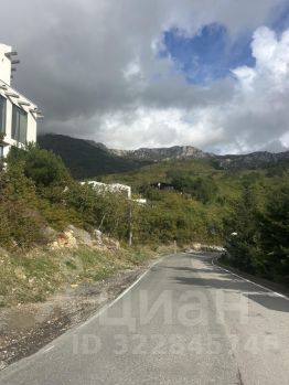 Участок с уклоном . С участка открывается вид на море и горы . До трассы пять минут на автомобиле .