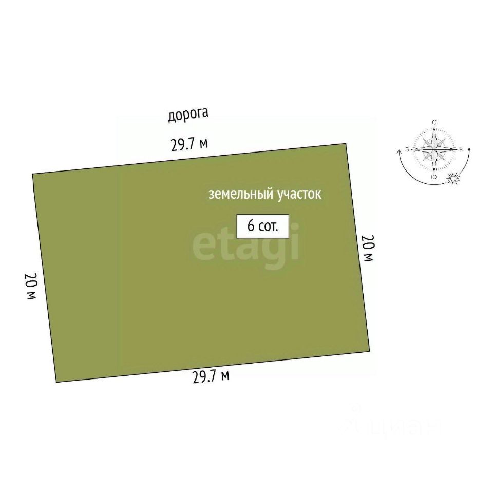 Продается участок 6 соток, ровный, правильной формы. 1 км до Азовского моря.