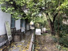 Участок благоустроен: здесь расположены хозяйственные постройки и ухоженный сад с плодовыми деревьями, включая инжир, сливу и вишню, а также декоративные насаждения — кипарисы и акации.