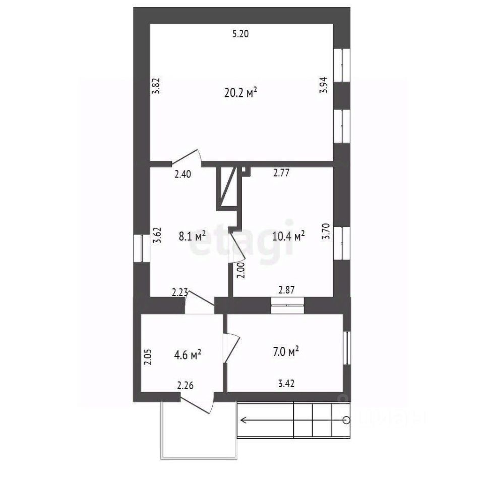 Дом общей площадью 50 кв. м, требующий проведения ремонта или полной перестройки, что позволяет новому владельцу адаптировать пространство под собственные потребности.