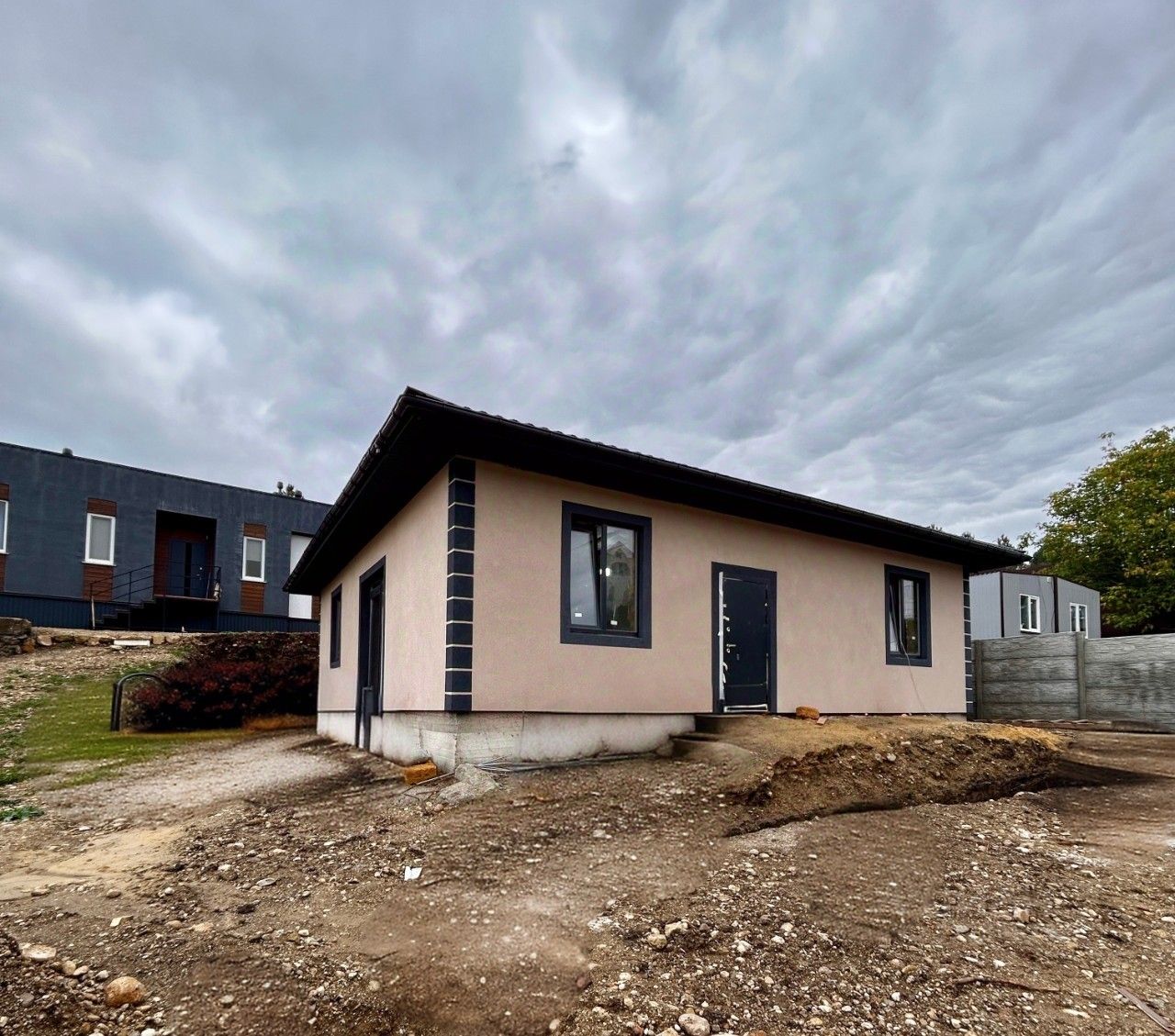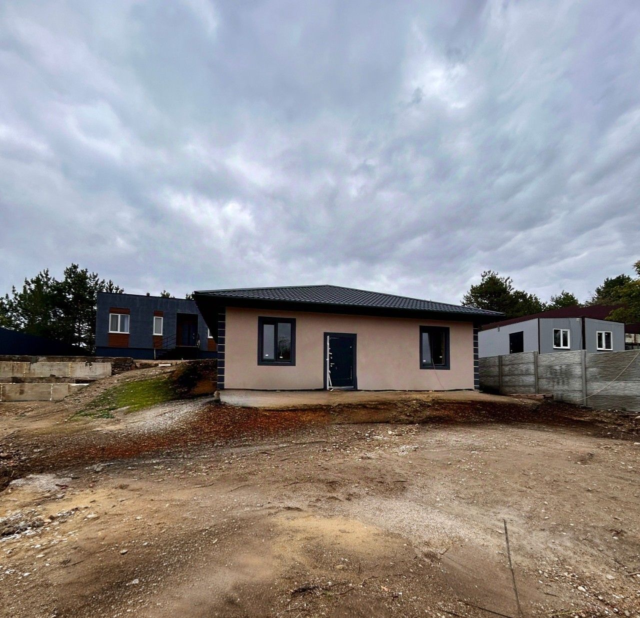 Стены оштукатурены, сделана стяжка пола, разведена сантехника и электрика.