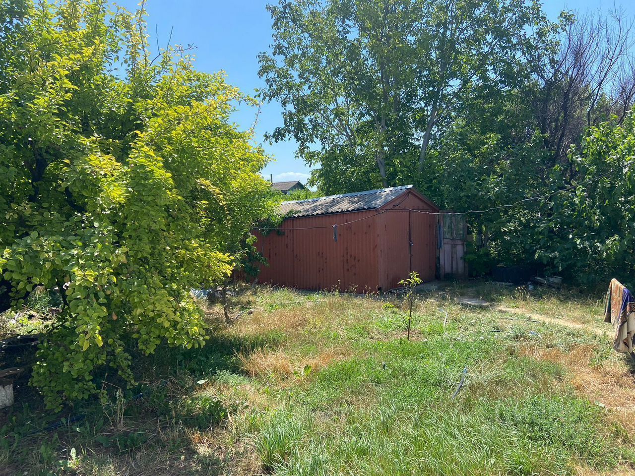 Много фруктовых деревьев и кустов,емкость для полива,гараж металлический,туалет на улице.