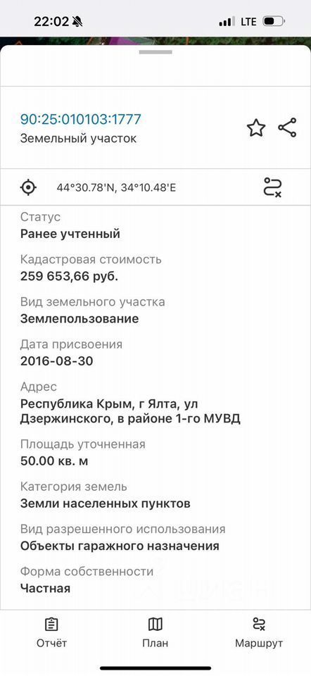Продам участок 0,5 сотки под гараж в районе автовокзала г.Ялта, ул Дзержинского, прямо напротив 1-го МУВД.