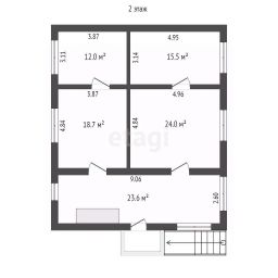 • Первый этаж: две жилые комнаты - 17,8кв.м и 23кв.м, кухня-гостинная - 16,7кв.м, санузел совмещенный, прихожая.