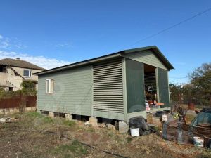 Дом находится на участке площадью 4,14 сотки, который полностью разработан и благоустроен. Общая площадь дома составляет 34 кв.м. В доме одна комната и кухня