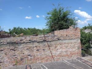 На участке есть недостроенное двухэтажное здание из кирпича размером 8 на 12 метров. Первый этаж с железобетонными перекрытиями, второй этаж из кирпича, контур не закрыт.
